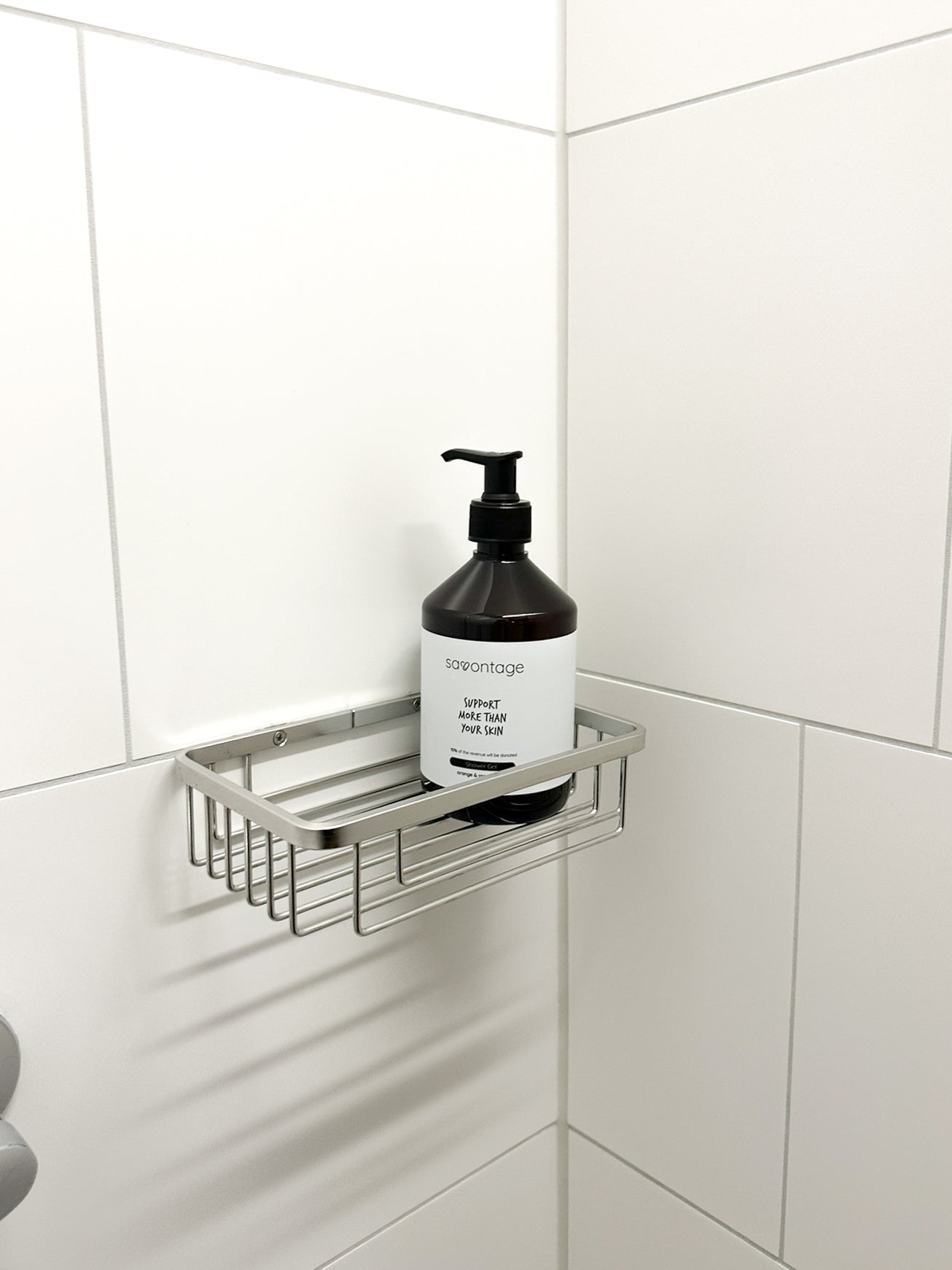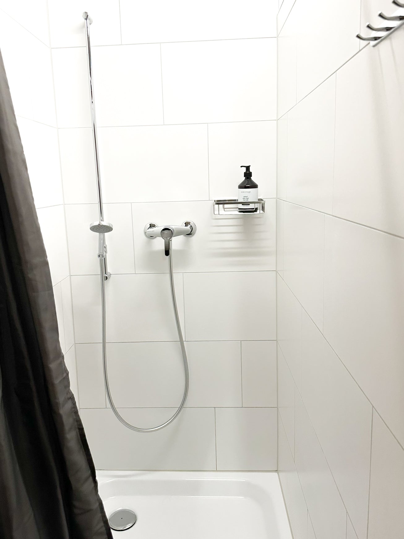 Aufgrund des Standortes in der Dusche haben wir uns für eine Kunststoffflasche entschieden.